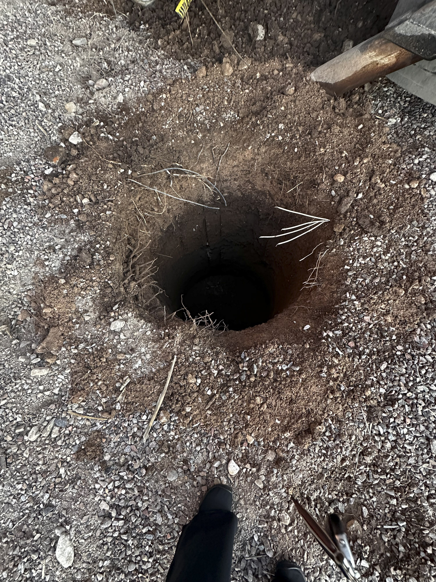 The first phase of my installation begins with the tractor digging the footing that will anchor the sculpture. Even after years in public art, each project introduces new tools, new technologies and new collaborations that deepen my practice and sharpen my professionalism. Working alongside my crew, engineers and equipment operators reminded me how dynamic this field truly is. Public art isn’t static, it requires an ongoing engagement with industries that evolve constantly. With every project, I take on fresh technical considerations-soil stability, structural requirements, machinery coordination-and each one expands the scope of what I do. Watching the first trench open in the ground felt symbolic- a literal foundation for the sculpture and a reminder that with every new challenge, I build a stronger foundation in my own career as well. Growth, professionalism and curiosity move in tandem and this project is already proving that once again.